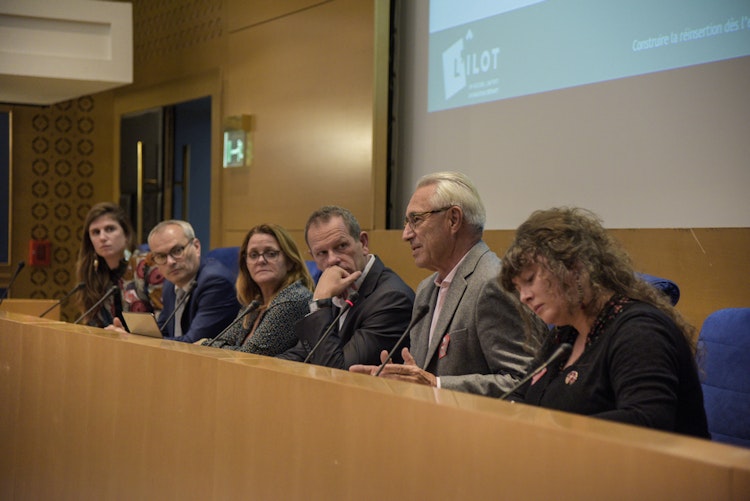 Xavier Allouis, ancien directeur général de l’Îlot de 2003 à 2010, a présenté les étapes clés de l’association de sa création à aujourd’hui, en passant par son projet d’origine, ses innovations dans l’accueil de personnes sous bracelet électronique et la création des ateliers qualification-insertion. François-Marie Tarasconi, directeur pénitentiaire d’insertion et de probation de Paris a exposé les facteurs déterminants dans le succès du lien entre la DISP et l’Îlot lors de la prise en charge des personnes sous main de justice sans domicile. Cette réussite qui s’est créée dans ce cadre particulier, n’est pour autant pas la règle des pratiques actuelles.