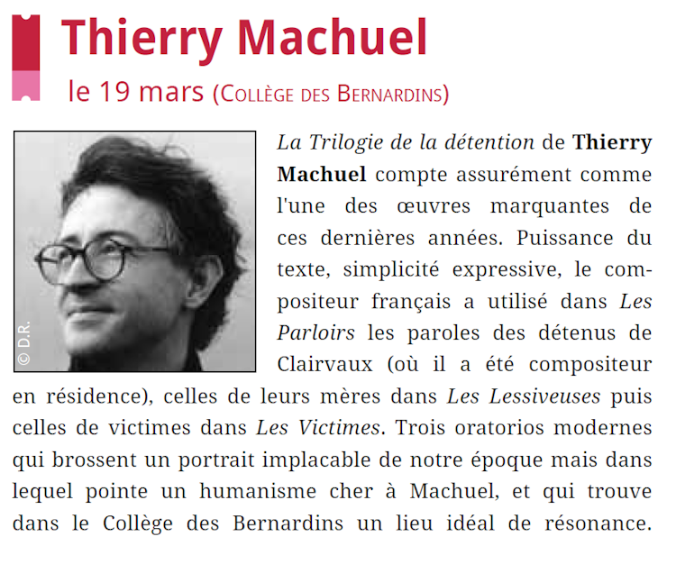 Les trois œuvres se saisissent donc de paroles véritables, trop peu entendues ou trop peu écoutées et parfois très prosaïques, pour les élever au chant et les intégrer dans le chant d'un chœur, cette communauté humaine qui, pour Thierry Machuel, "reflète notre société".