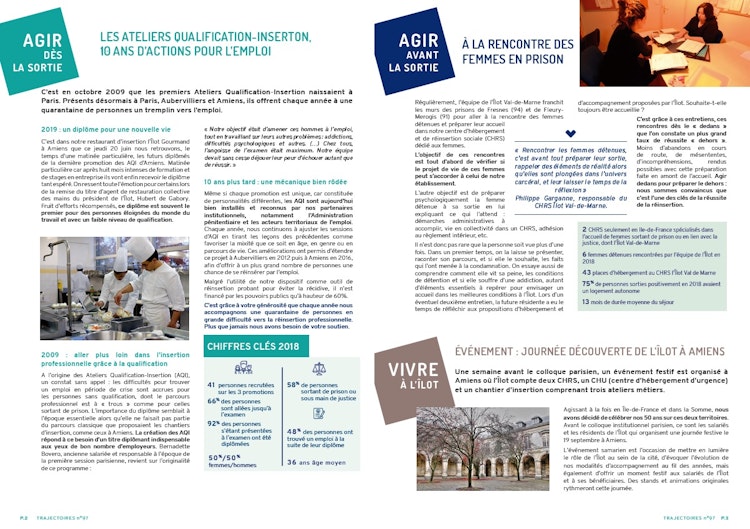 Les thématiques abordés dans ce numéro : fêter nos 50 ans à Paris et Amiens, les 10 ans des Ateliers Qualification-Insertion, aller à la rencontre des femmes en prison, le témoignage d'un donateur, etc.
